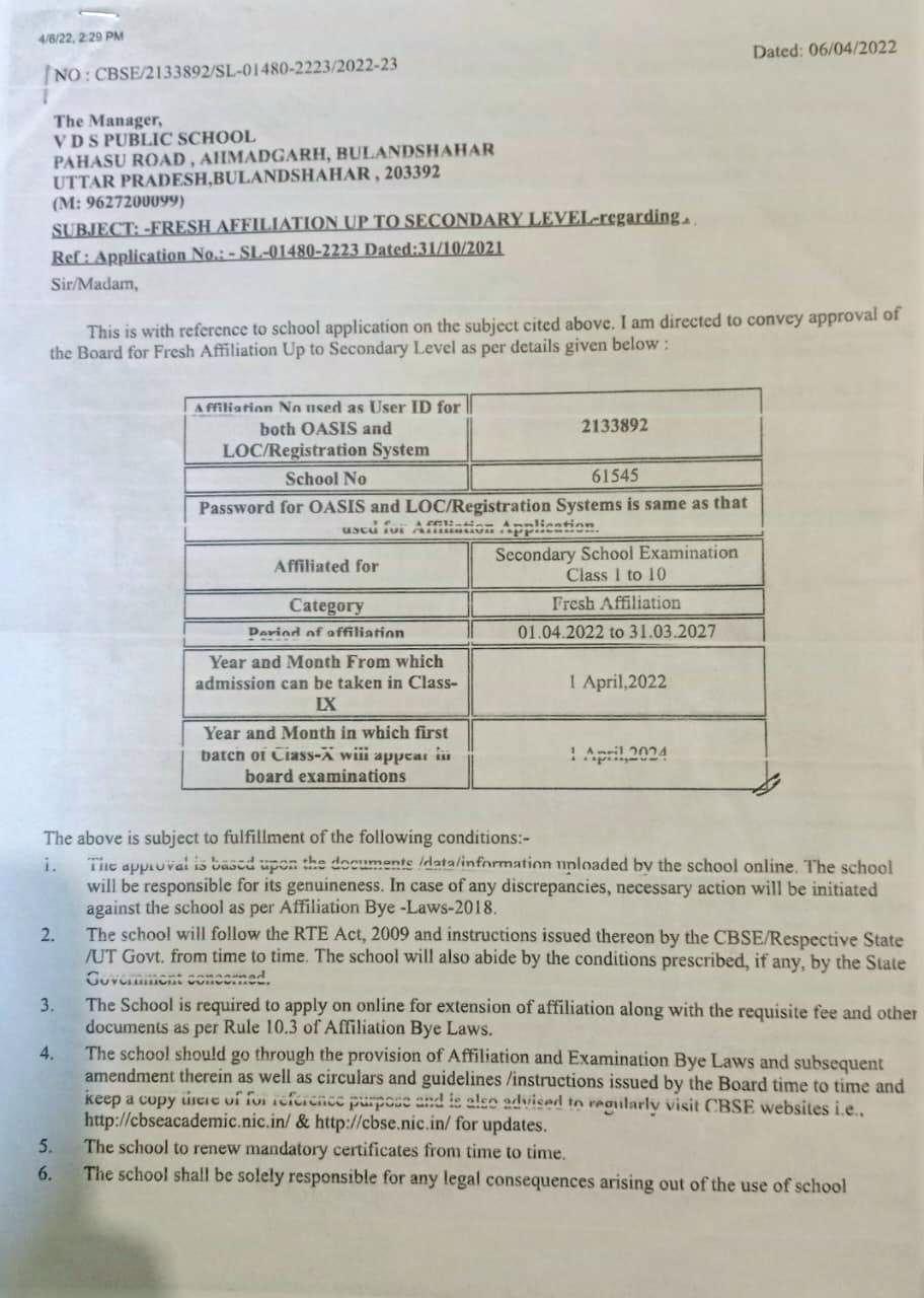 V.D.S. Public School Ahamadgarh Established in the year 2015 is a premier school.Now It is NC to 10th Affiliated to CBSE Board . its Affiliation no. is 2133892 and School No. is 61545. The instauration is set amidst the most aesthetically planned environment, it provides a congenial and serene atmosphere for learning to its students who make the optimum use of the building and space provide to them, away from the congestion of city life.